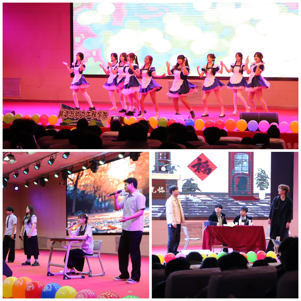 整场晚会节目精彩纷呈、高潮迭起,歌曲、乐器演奏等节目穿插其间,为观众呈现了一场视听盛宴。晚会不仅是学院校园文化建设的成果展示,更是对学子们逐梦路上坚守初心、勇敢前行的美好期许。所有节目均由学院学子自编自导自演,充分展现了能源与动力工程学院学子的创新精神与艺术才华。