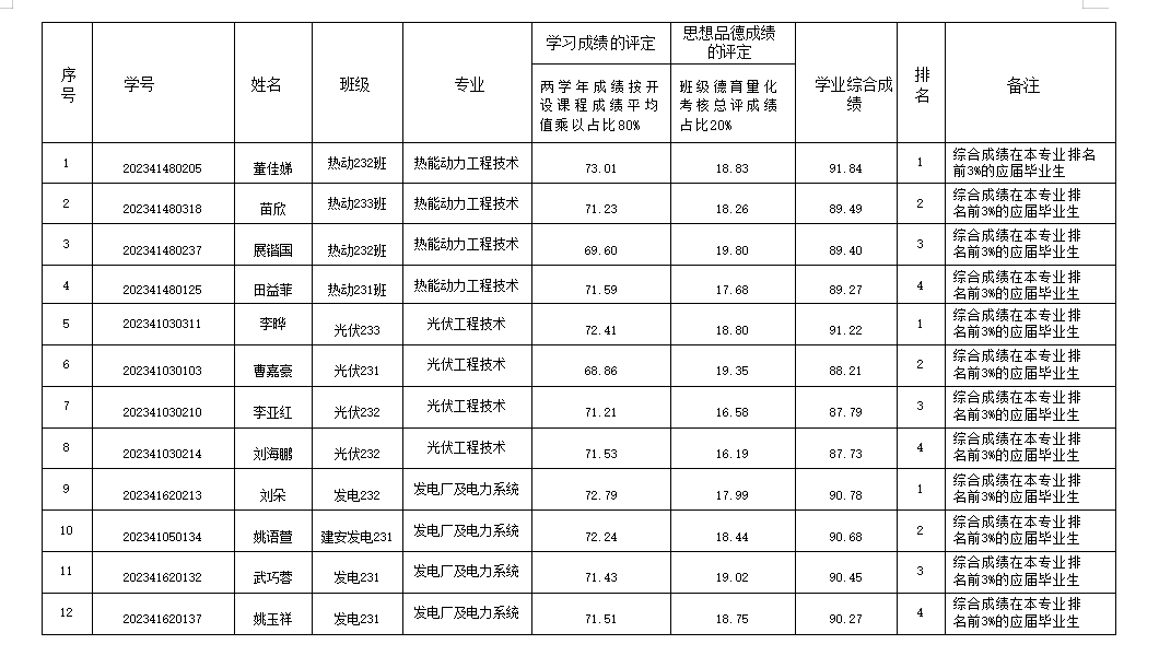 根据《2026年甘肃省普通高等学校高职(专科)升本科免试招生工作方案》(甘教学〔2025〕1号)、学校招就处《关于做好2026年高职(专科)升本科免试学生资格审核确认工作的通知》(招就字〔2026〕2号)、《兰州石化职业技术大学能源与动力工程学院2026年高职(专科)升本科免试学生学业综合成绩测评办法》等相关文件精神,经资格初审、成绩汇总、专题会议研究决定,拟推荐董佳娣等12名学生为我院2026年专升本免试学生,现予以公示。